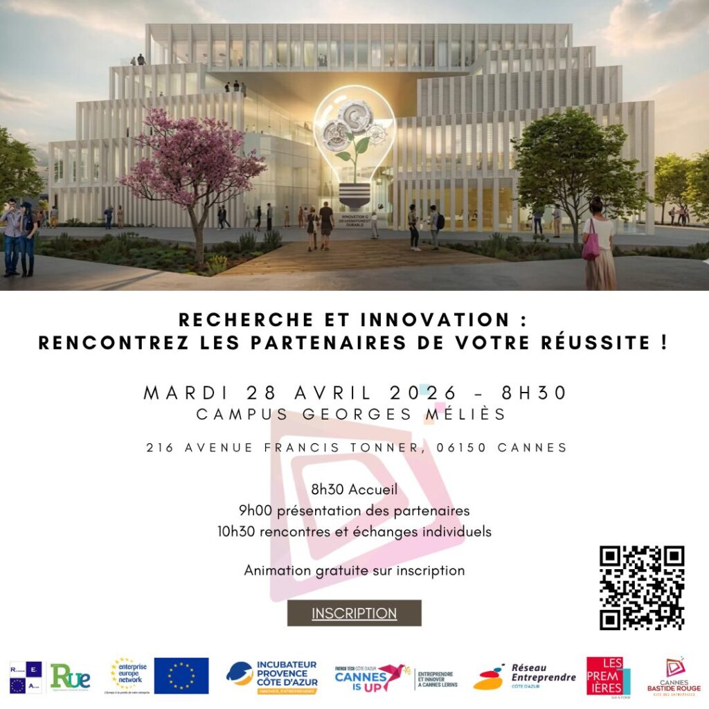 Cet événement est organisé avec la participation de nos partenaires : Recherche et Avenir, RUE, Cannes Is Up, Réseau Entreprendre, Les Premières Sud et Incubateur Provence-Côte d’Azur